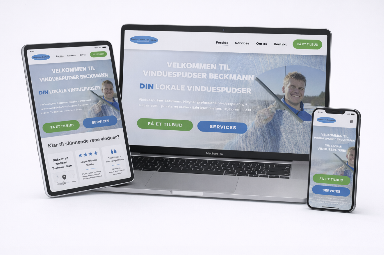 Jeg udviklede en hurtig, mobiloptimeret og konverteringsfokuseret hjemmeside for Vinduespudser Beckmann, så nye kunder nemt kan finde virksomheden online